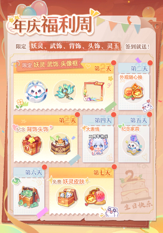 歡慶二周年,豪禮送不停!驚喜福利周來臨,登錄即可領(lǐng)取海量豪禮!御靈師在活動期間登錄簽到即可領(lǐng)取周年限定寵、紀念武飾、背飾、頭飾、妖靈皮膚,以及靈玉、坊市五折券、綺羅華章、妖靈成長果等驚喜福利!8Za驛資訊
