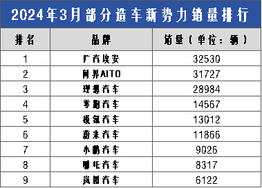 ▲部分造車新勢力3月銷量數(shù)據(jù)(來源:車企官方;統(tǒng)計、制圖:消費者報道) f3G驛資訊