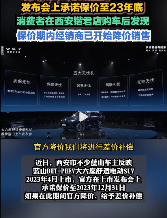 為了提升魏牌的銷(xiāo)量,長(zhǎng)城汽車(chē)也加入“價(jià)格戰(zhàn)”之中。然而,從去年10月開(kāi)始,有車(chē)主發(fā)現(xiàn)長(zhǎng)城魏牌經(jīng)銷(xiāo)商開(kāi)始降價(jià)銷(xiāo)售藍(lán)山車(chē)型,為此要求魏牌方面履行新車(chē)上市發(fā)布會(huì)上作出的保價(jià)承諾,不過(guò)魏牌方面以“官方指導(dǎo)價(jià)并未下降”為由拒絕車(chē)主們提供差價(jià)補(bǔ)償?shù)脑V求,第一批魏牌藍(lán)山車(chē)主成為花最高價(jià)購(gòu)車(chē)的“冤大頭”。oZ7驛資訊