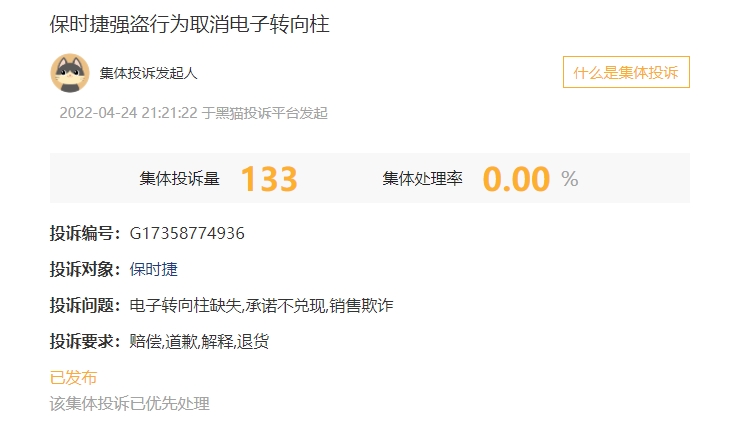 2022年5月18日,保時捷公布關于轉向柱電動調節(jié)功能問題的解決方案,“針對此前承諾過恢復轉向柱電動調節(jié)功能的客戶,保時捷將履行承諾,免費提供相關功能的恢復服務”“對于所有受影響客戶,保時捷將提供整車一年延長保修服務”。
