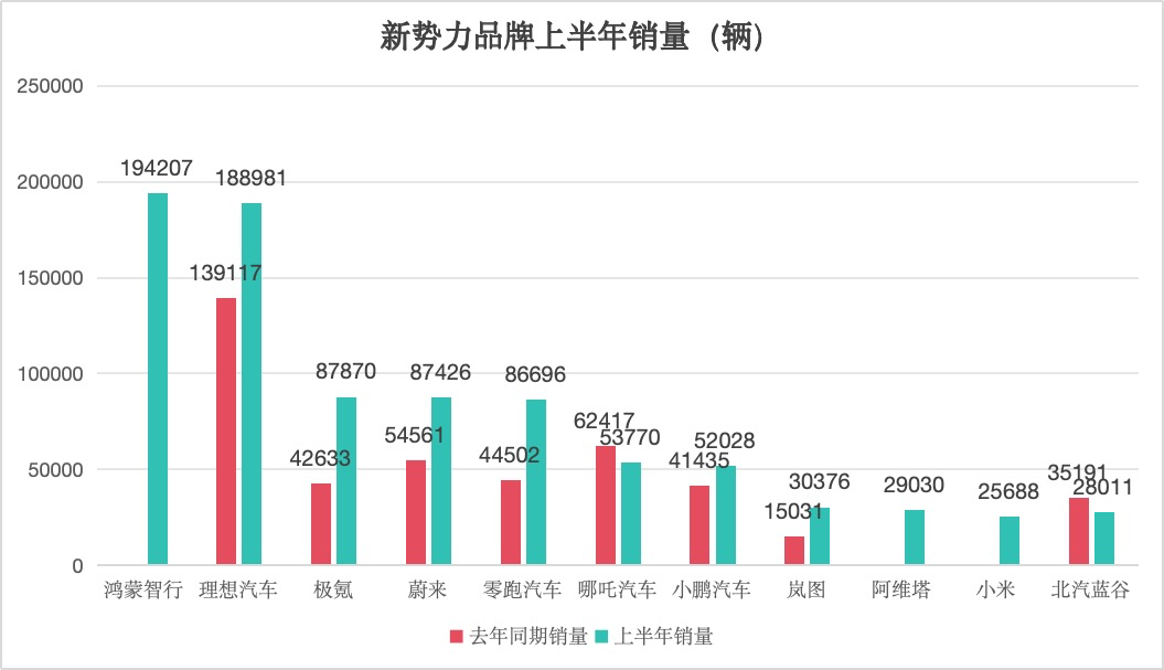 理想、極氪、蔚來、零跑等新勢力品牌實現(xiàn)大幅增長,其中極氪、零跑6月交付量首次突破20000輛,躋身新勢力品牌第一梯隊。此外華為主導(dǎo)的汽車聯(lián)盟“鴻蒙智行”(含問界、智界品牌等)銷量也快速提高,上半年合計交付量已超過理想汽車。KfD驛資訊