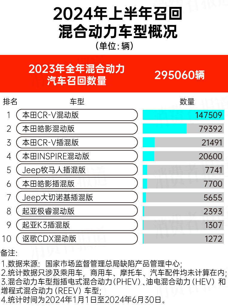 此外,2024年上半年共有超過(guò)29.5萬(wàn)輛混合動(dòng)力車型在召回行列,包括本田CR-V混動(dòng)版、本田皓影混動(dòng)版、本田INSPIRE混動(dòng)版等。XeZ驛資訊
