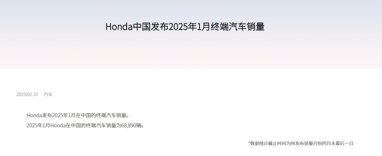 本田中國公布的數(shù)據(jù)顯示,今年1月本田在華終端銷量為68890輛,同比大幅下滑近31.8%。8EC驛資訊