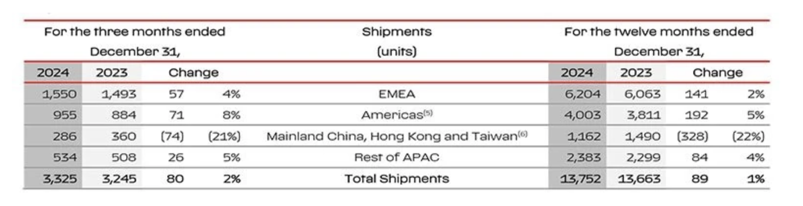 2024年法拉利在不同市場銷售表現(xiàn)(圖源:企業(yè)官網(wǎng)) dBH驛資訊