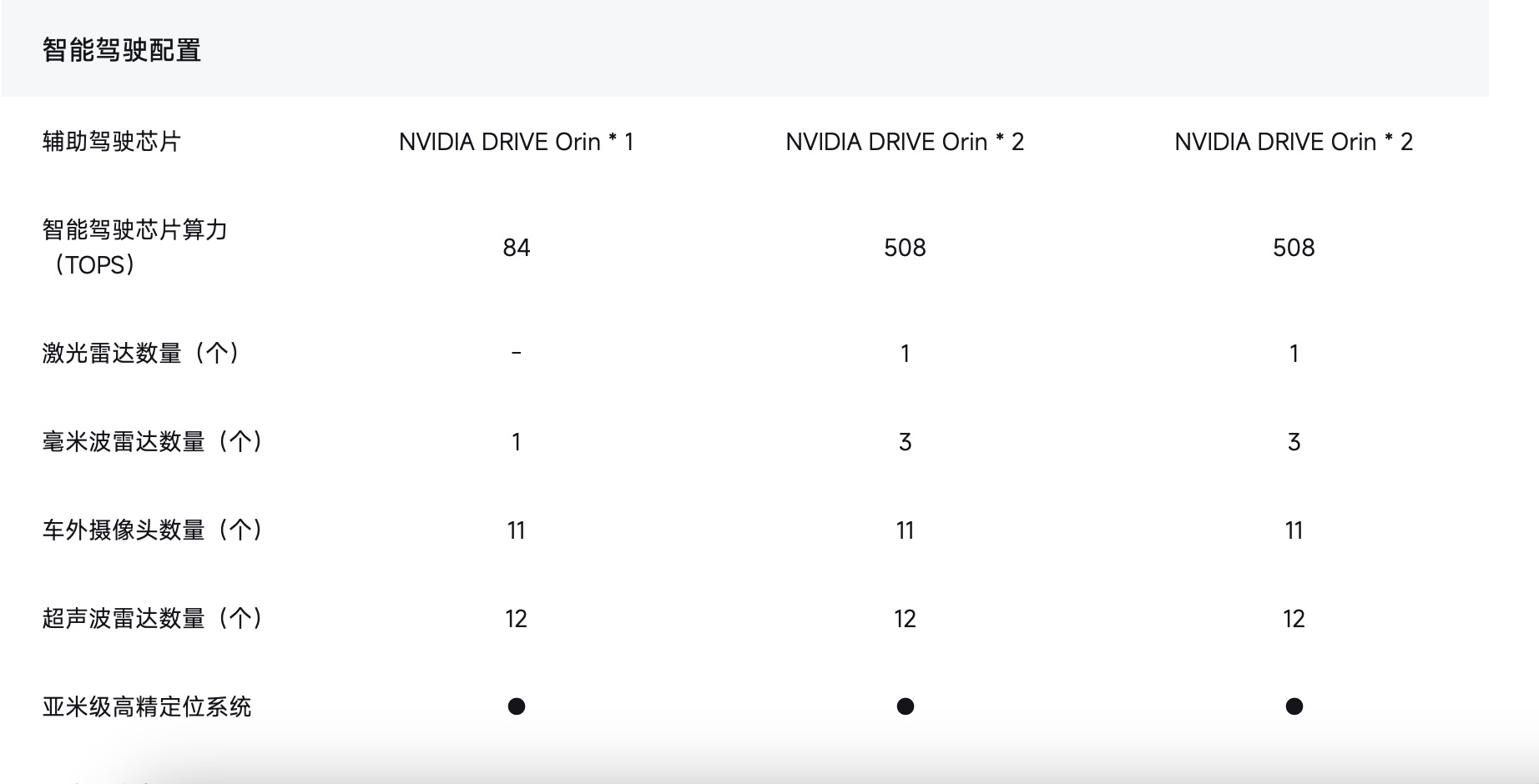 在上述頁面底部,小號字體寫著“區(qū)分車型版本,以實車為準”。而小米SU7配置表中,標準版小米SU7較中配、高配車型少1顆輔助駕駛芯片、且無后兩者搭載的激光雷達,其輔助駕駛功能也較中高配車型減少數(shù)項。2AE驛資訊