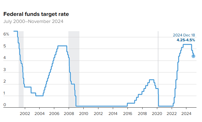 美聯(lián)儲(chǔ)主席杰羅姆·鮑威爾宣布,將基準(zhǔn)聯(lián)邦基金利率下調(diào)25個(gè)基點(diǎn),至4.25%至4.5%之間。k0n驛資訊