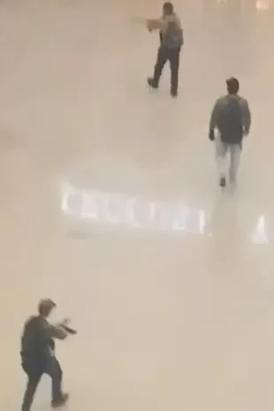 莫斯科近郊克拉斯諾戈?duì)査箍耸幸患乙魳?lè)廳外 (圖源:社交媒體視頻截圖) g9C驛資訊