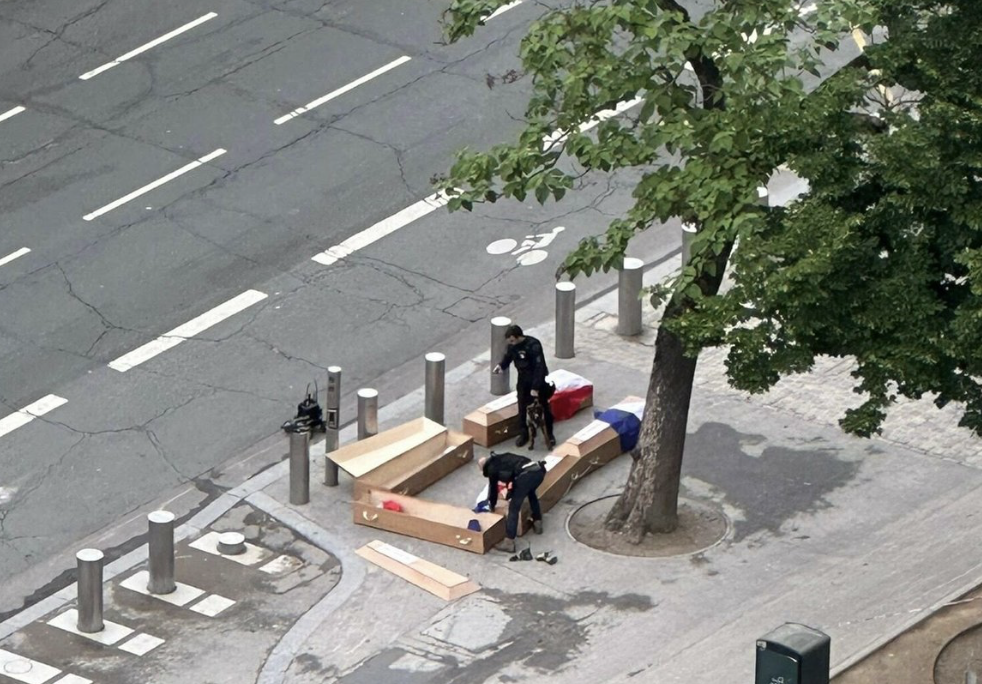 6月3日,一名保加利亞人、一名德國人和一名烏克蘭人將五口用法國國旗包裹的空棺材放在了巴黎地標(biāo)埃菲爾鐵塔附近,抗議法國政府在俄烏沖突上的處理方式。ZFt驛資訊